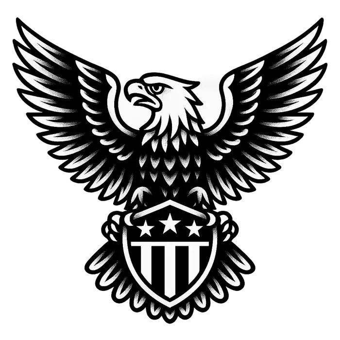 Bold eagle with spread wings